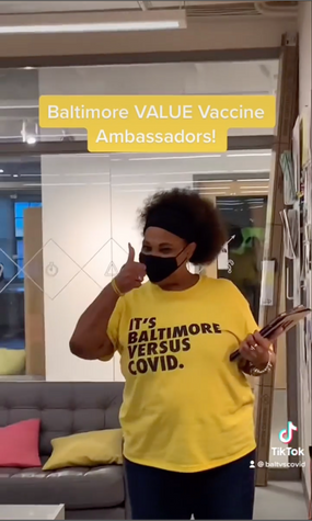 The Baltimore City Health Department, partnering with Morgan State University, Johns Hopkins, and MICA’s Center for Social Design collaborated on an outreach campaign for Covid vaccinations. After identifying the limitations of one large outreach team, smaller “Value” groups were established. These groups are made up of individuals (Peer Ambassadors) who identify with the community they represent and can best understand the complexities and concerns of their community members.